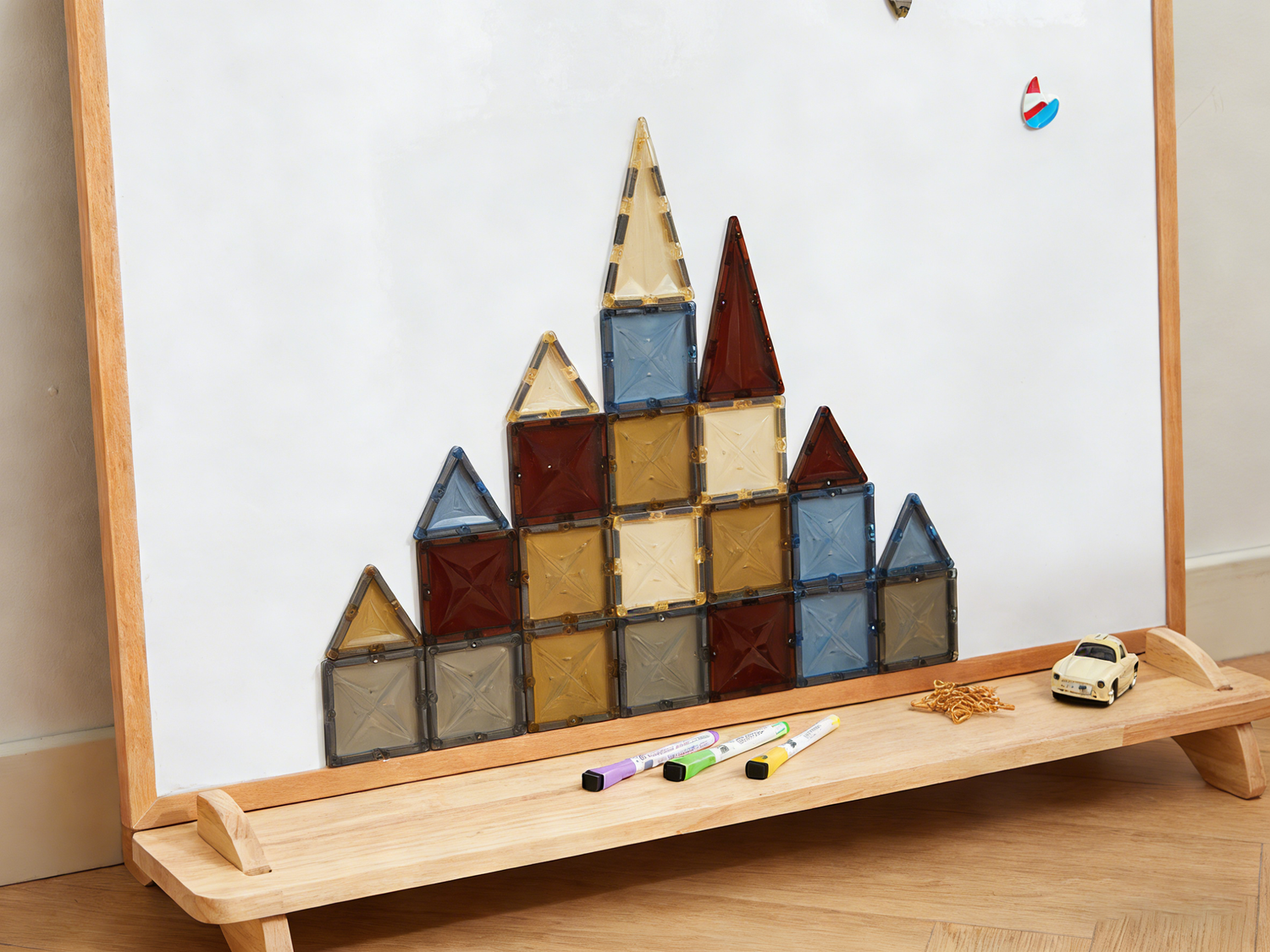 - Magnetic on both sides — use magnets/tiles to extend play.